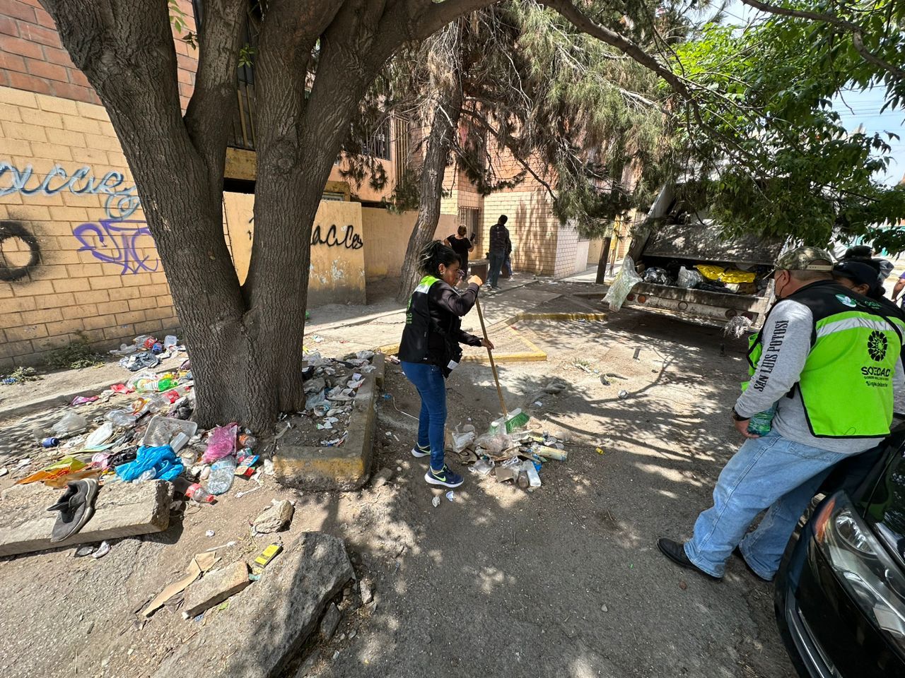 Soledad de Graciano Sánchez, SLP. – Con el objetivo de mantener limpio el municipio de Soledad de Graciano Sánchez y evitar la proliferación de entes contaminantes en la localidad que pongan en riesgo la salud de las y los soledenses; la Dirección de Ecología a cargo de Dolores Herminia Juárez Herrera en colaboración con diferentes áreas del Ayuntamiento como lo es Tránsito Municipal, y Aseo Público, realizan operativos de limpieza en diferentes colonias de la localidad.