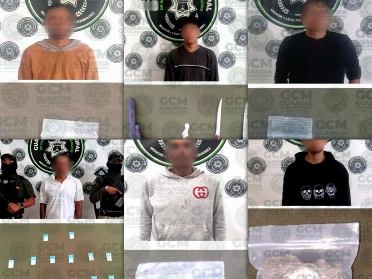 Soledad de Graciano Sánchez, SLP. – Oficiales de la Guardia Civil de Soledad de Graciano Sánchez detuvieron a seis hombres y dos menores por posesión de metanfetaminas y enervantes; uno de ellos también portaba armas prohibidas. Los hechos ocurrieron en las colonias El Morro, Rancho Pavón, La Virgen, Hogares Ferrocarrileros, Quintas de la Hacienda, Rinconada del Palmar y 21 de Marzo, como parte de trabajos que garantizan paz social en la demarcación.