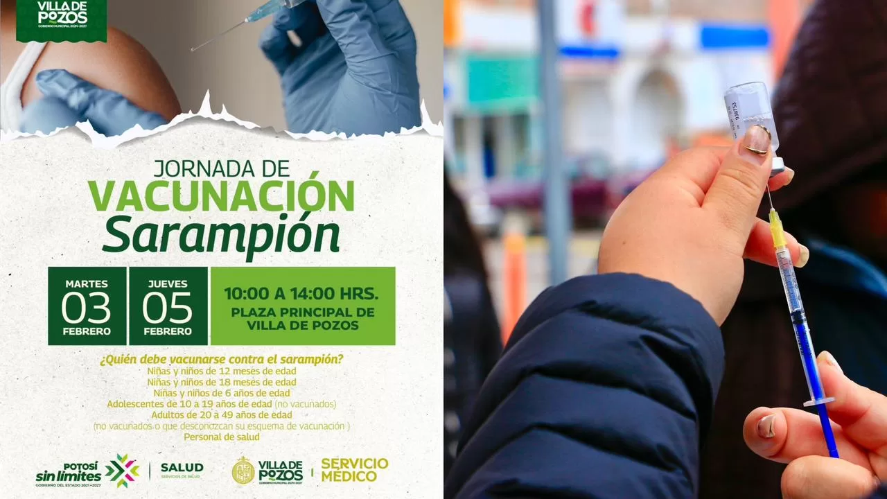 La jornada se realizará los días martes 3 y jueves 5 de febrero, en un horario de 10:00 a 14:00 horas, en la Plaza Principal de Villa de Pozos, donde se aplicarán las vacunas de manera gratuita como parte de la estrategia para prevenir enfermedades y fortalecer la salud pública.